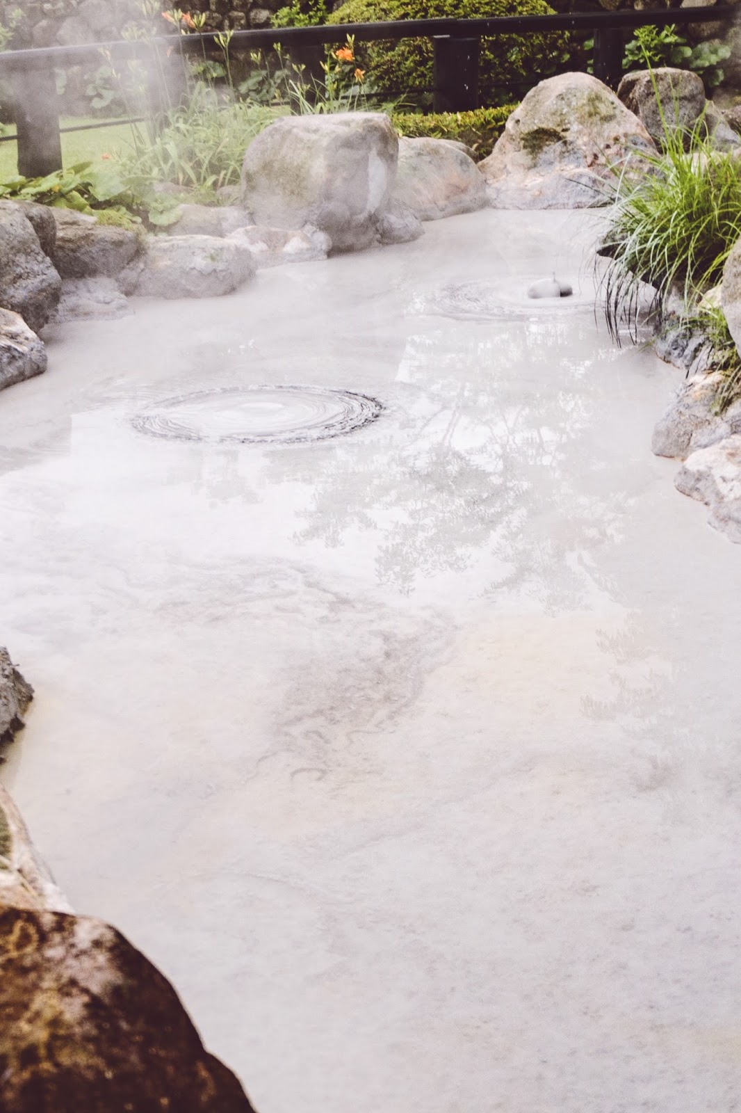 因爲下雨,溫度稍降,我們才可以參觀溫泉。